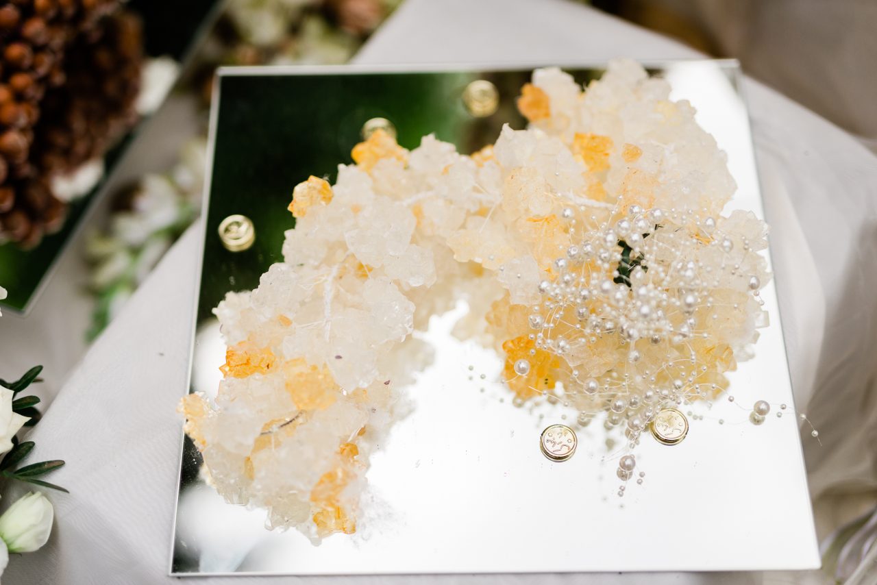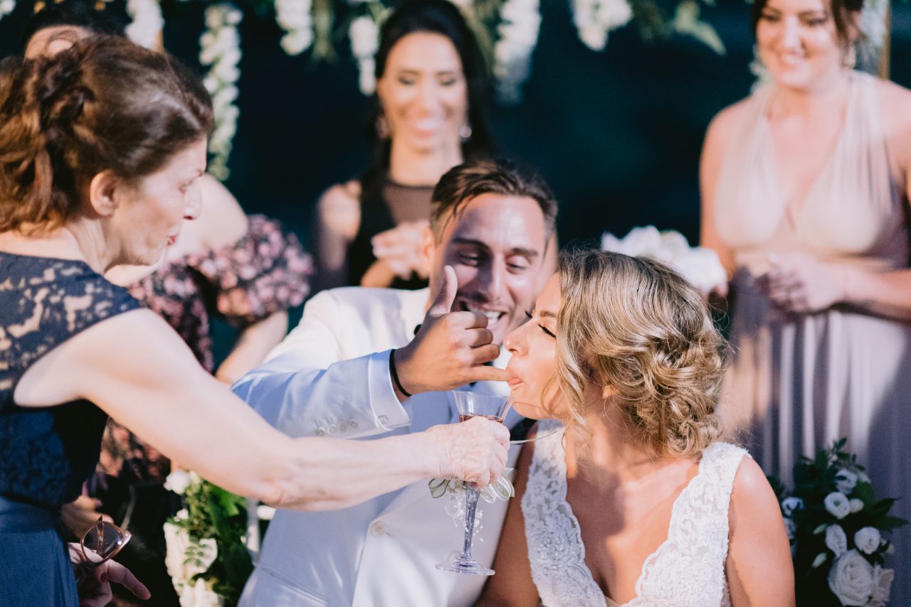Consumed right as the ceremony is going to conclude. The bride and groom exchange hands (usually with the pinky) dipped in the honey and shared off the hand to represent sweetness for the couple’s life.