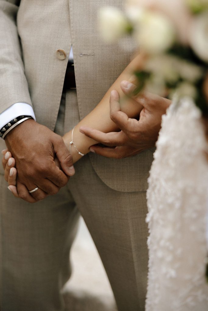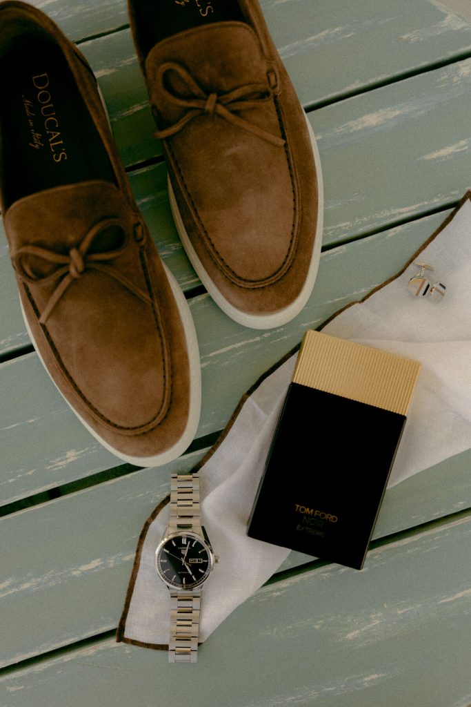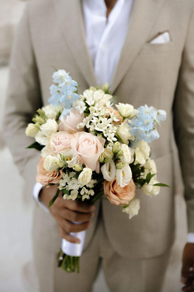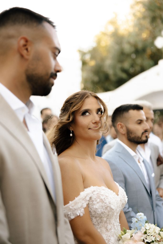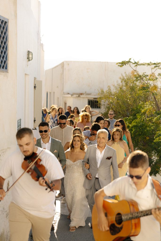 Following the heartfelt ceremony, the celebration continued at a beach bar, where the transition from tradition to party was effortless. As soon as the first toast was raised, the venue transformed into the ultimate summer wedding celebration. Signature cocktails, a delicious Mediterranean feast, and party props set the tone for a night to remember. Friends and family danced barefoot in the sand, laughter echoed under the starlit sky, and the couple radiated happiness.
