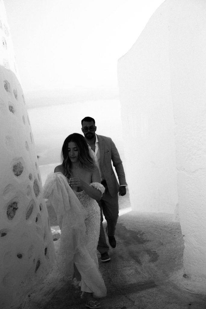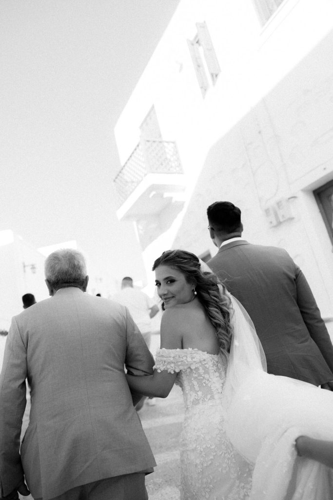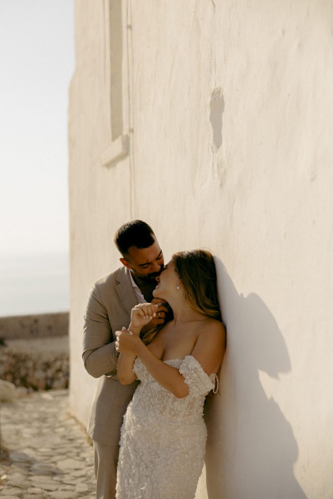 Georgia and Fondas exchanged vows at the beautiful church of Megali Panagia in Astypalaia, a place rich in history and breathtaking views. The traditional yet intimate ceremony was filled with emotion, with the couple surrounded by their closest loved ones. The stunning whitewashed church, set against the deep blue sky, provided a magical and meaningful start to their wedding celebration.