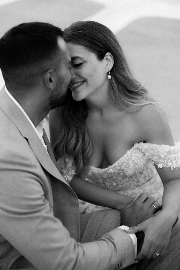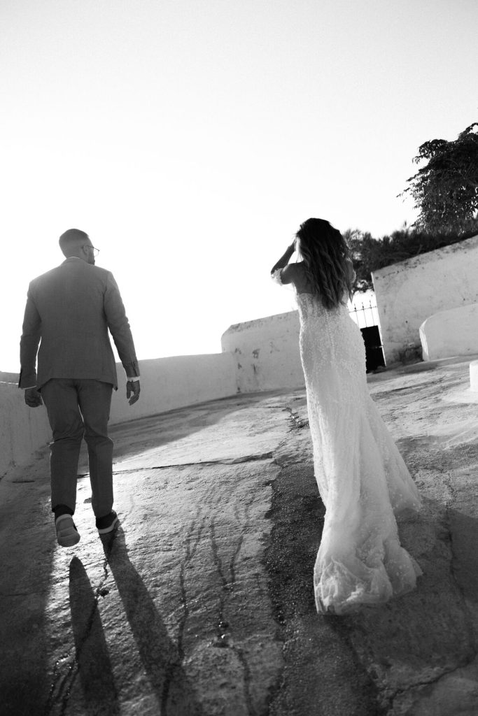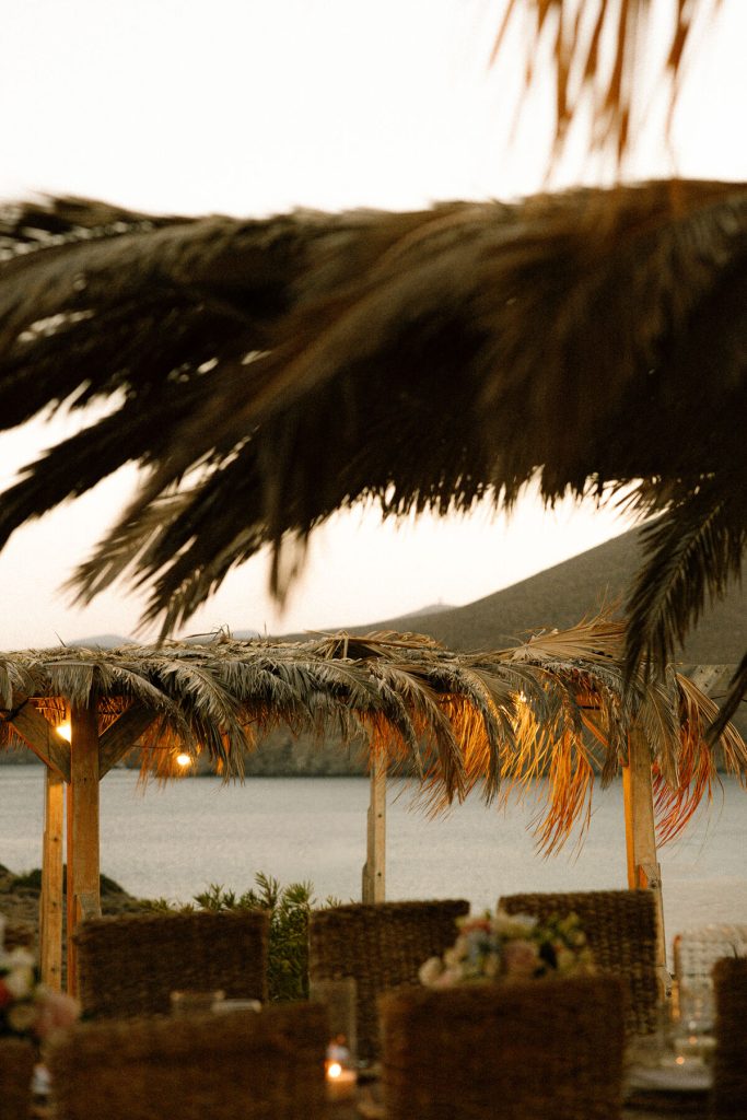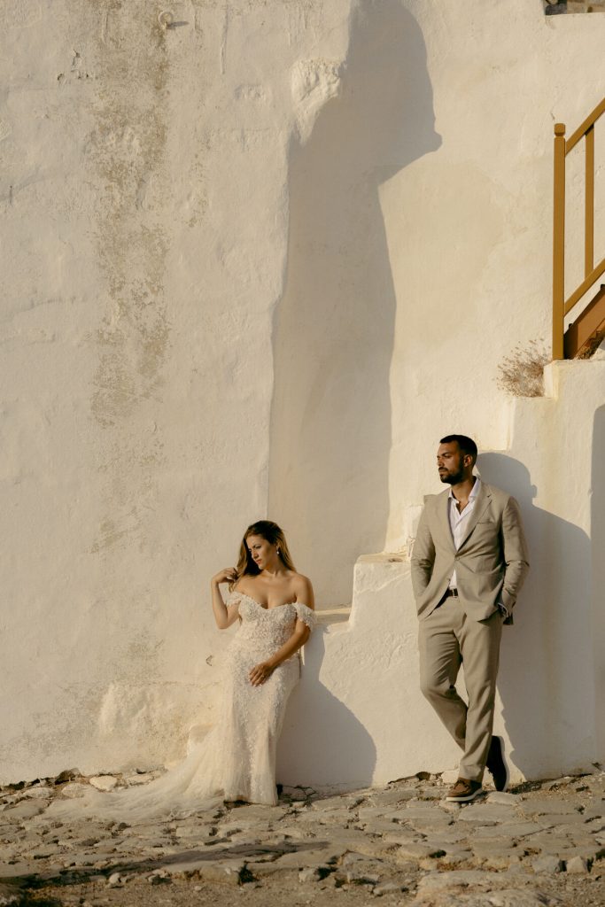 Astypalaia, the butterfly-shaped island of the Dodecanese, was the perfect choice for their intimate yet vibrant wedding. With its whitewashed houses, golden beaches, and deep blue waters, it provided an effortlessly romantic atmosphere. The couple chose a charming beach bar for their reception—laid-back, stylish, and perfectly suited to their free-spirited love.