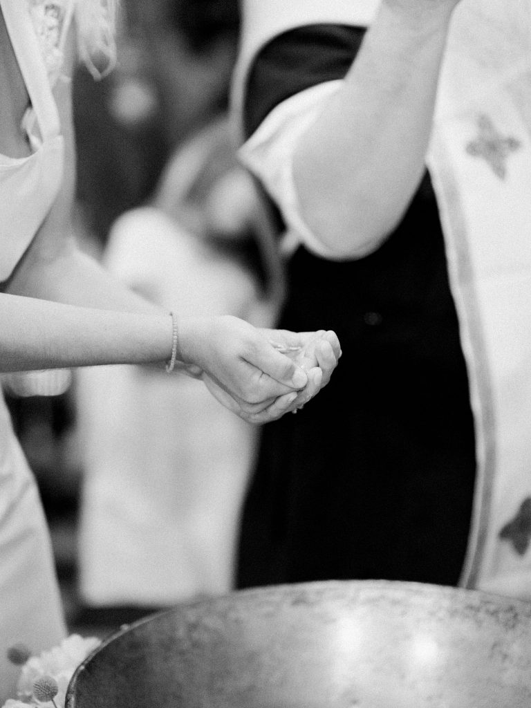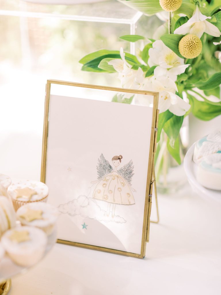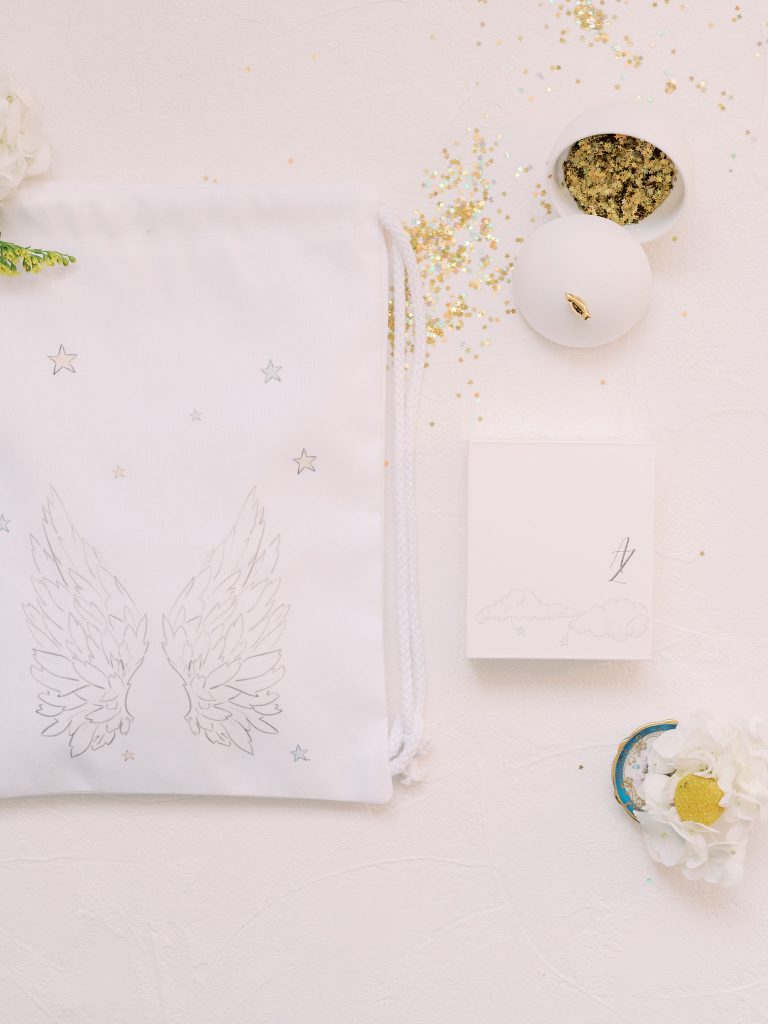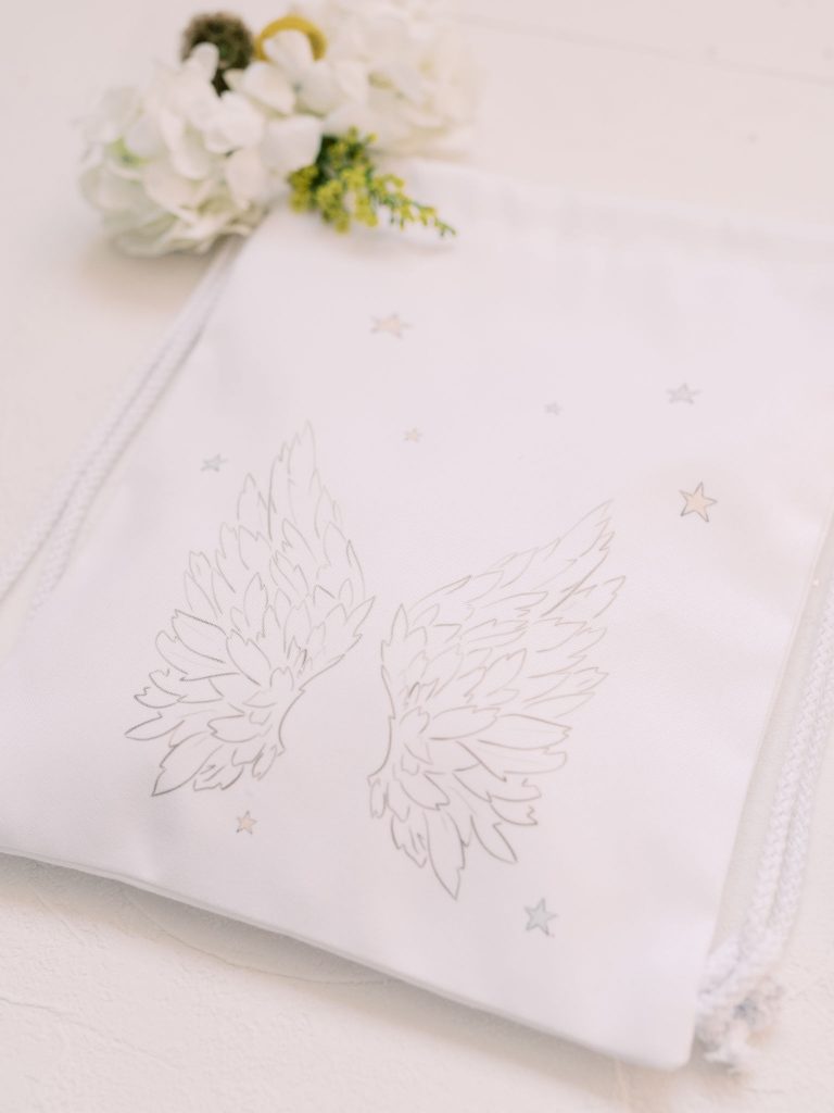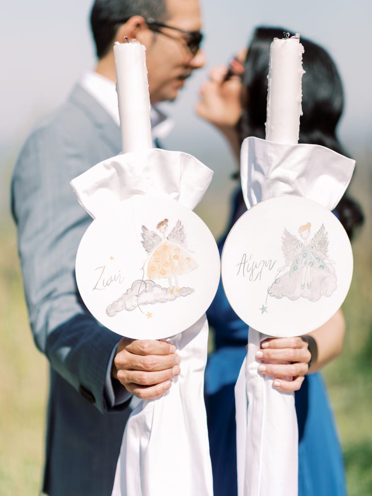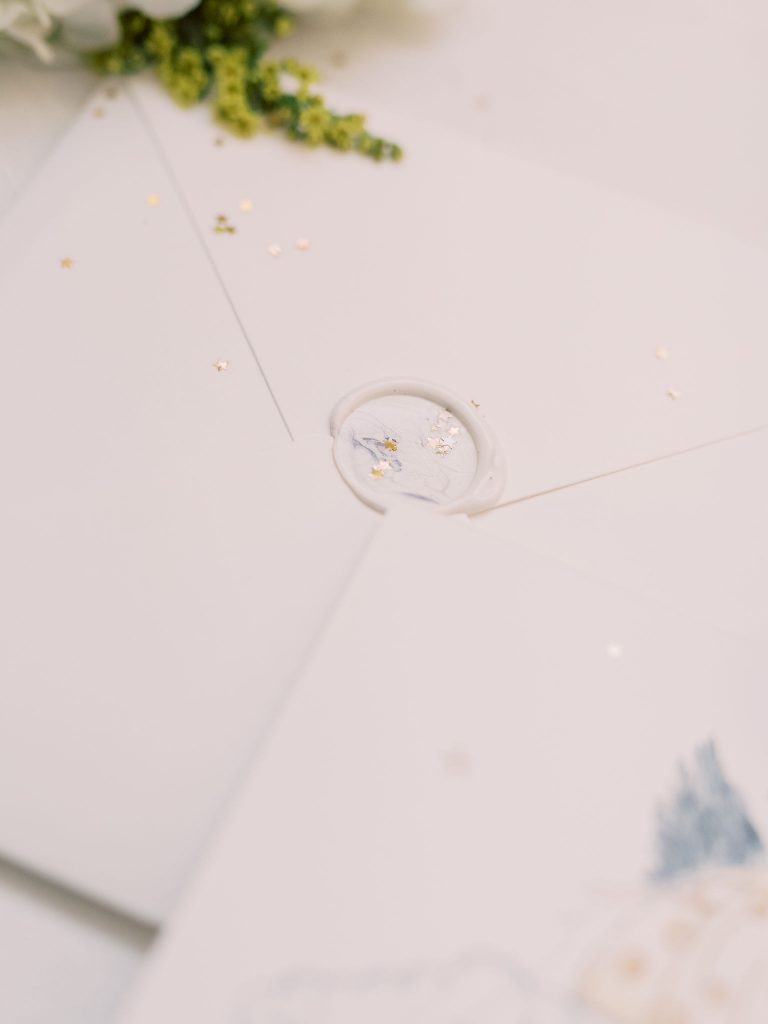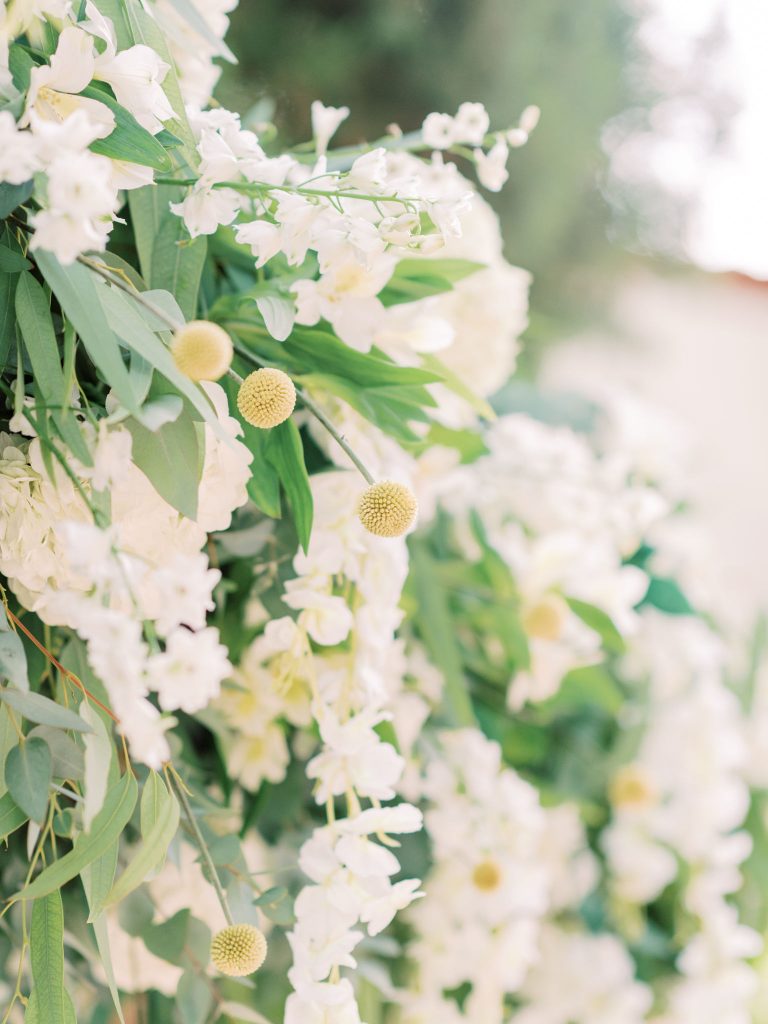 My sister asked for a concept that we could incorporate angels, as they have a special symbolism for us. Manousenia, my beloved talented graphic designer, draw a unique stationery suite. White, yellow and blue - our color palette. Hydrangeas and craspedia - the main flowers we used for the decoration.