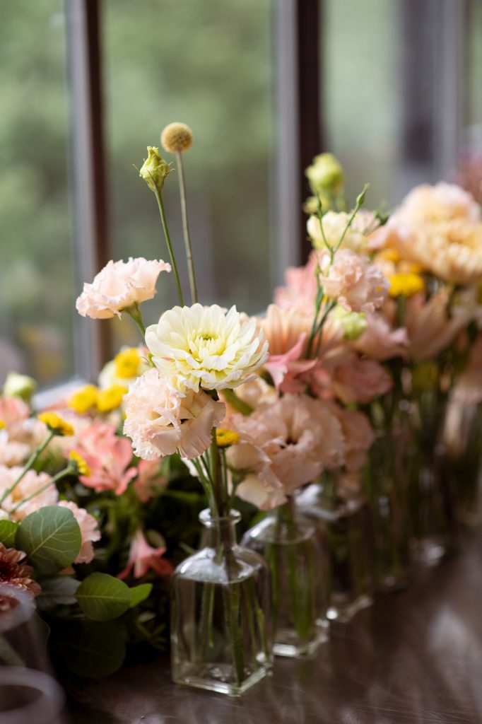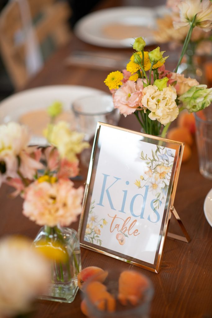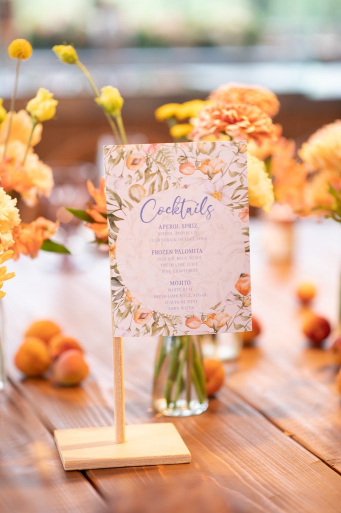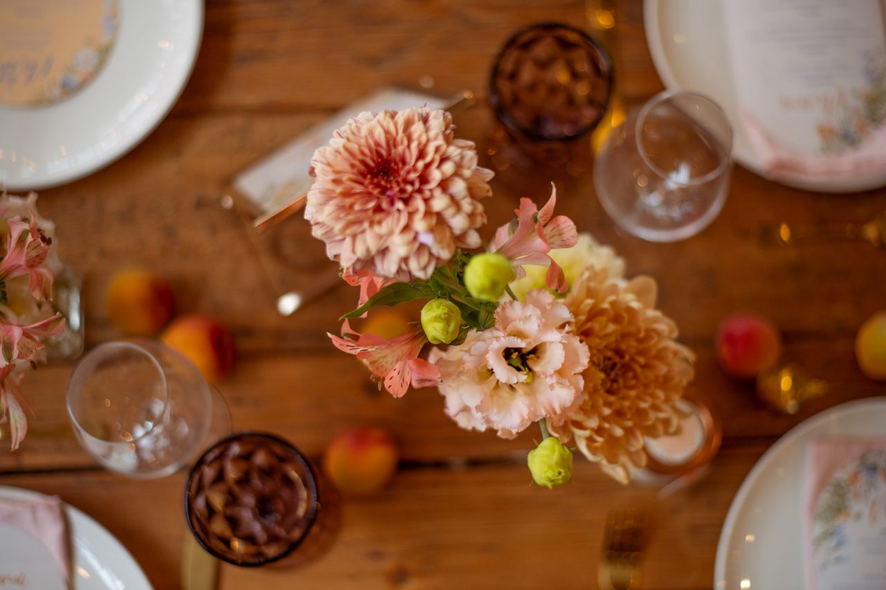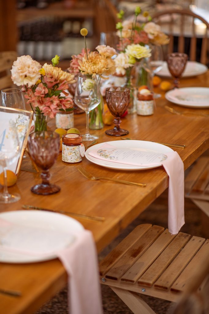 And beautiful Wood Guest Tables set with Elegant Apricot-inspired Table Settings!