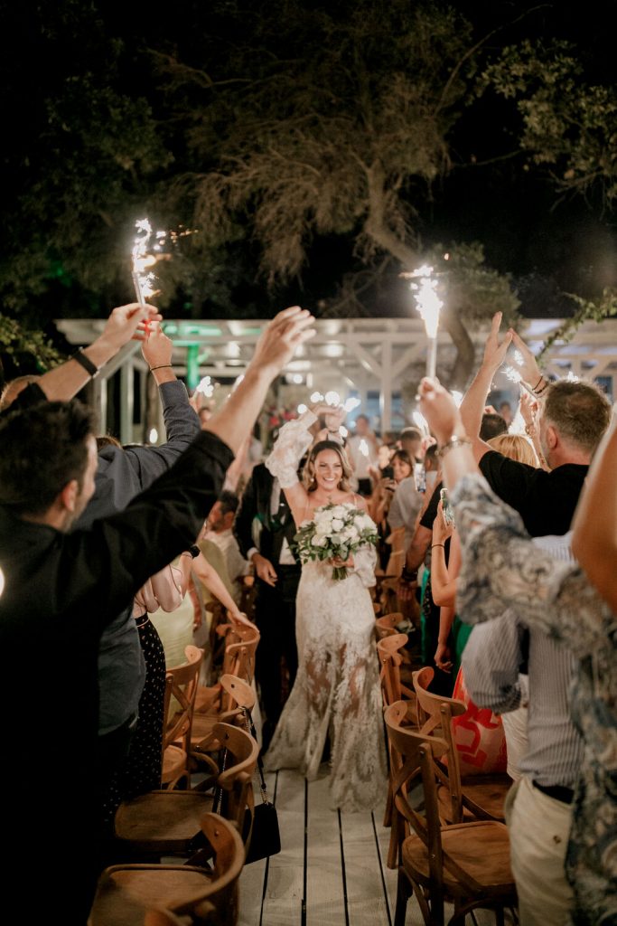 Great food was a significant part of the celebration, but Maro and Vasilis also invested a lot in the entertainment of their guests. "We need our friends and fam to unwind and have an amazing time after all this time waiting to party." They hired the Prestige Band, who rocked the decks till morning, and the party only took a brief hiatus for a most spectacular firework show.