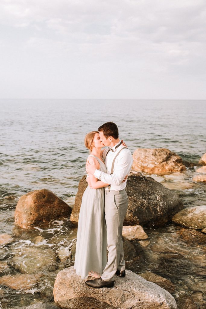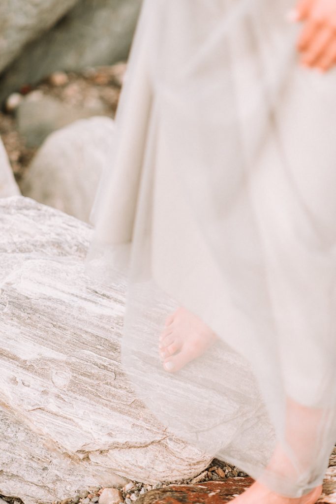 Right before they exchange their big day "I do"s they decided to have their engagement shoot someplace different than the actual wedding region, so with their planner Phaedra Liakou, from Phaedra Liakou Events, happily proposed we go for Pelion. According to Greek mythology, it was the summer home of the Olympian Gods, a green wonderland where heavy with fruit trees meander among wild olive groves, firs, oak and chestnut forests, and winding mule paths lead to the shore. The massive sugar colored rocks on the beach bathed in milky soft light were just too pretty and dramatic to miss!