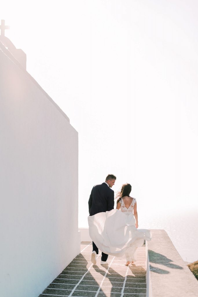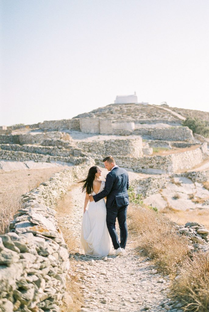 Following the reception, the couple had their next day portrait shooting at the Centaurs'path which culminates in a magical setting of waterfalls in the heart of the forest, while early next day the newlyweds traveled to Folegandros on the southern rim of the Cyclades where terraced fields and pasty beauty awaited for their honeymoon to begin.