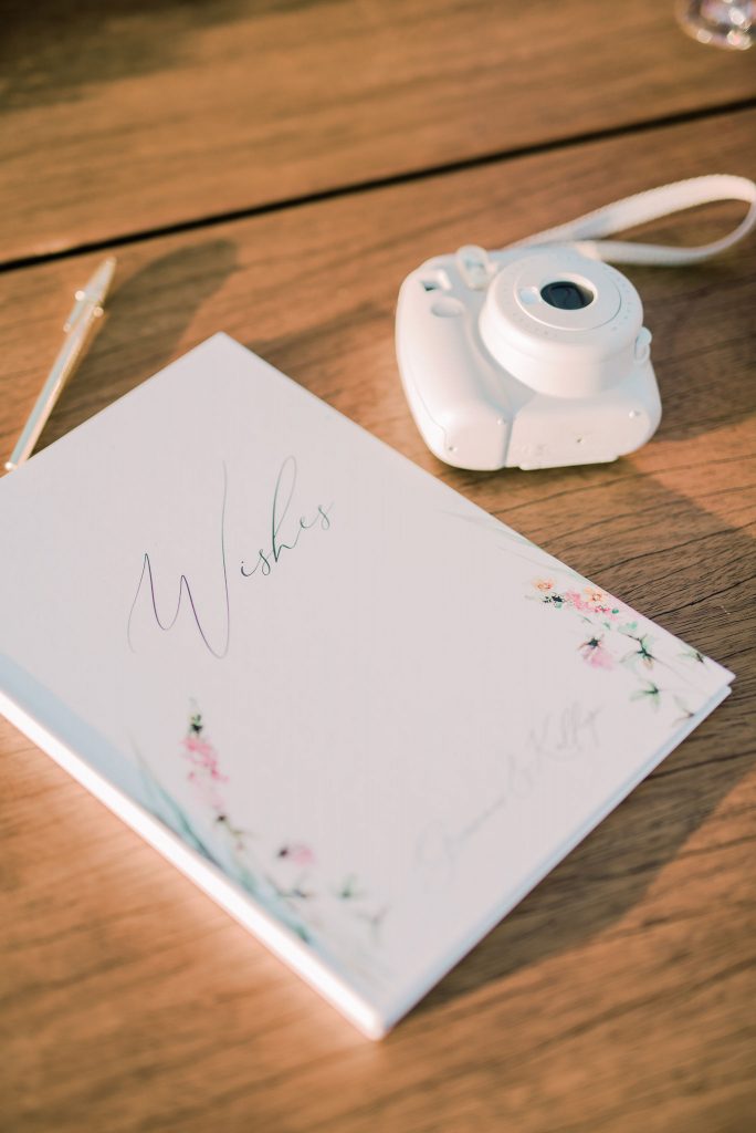 We dressed the Orthodox chapel of Saint Anargyroi of Portaria in playful florals according to the couple's wishes without going overwhelmingly large on decor, keeping things pretty and delicate on the tablescapes and wishbook station with according arrangements, while focusing on the food, delicious locavore of meats, cheese selections and wines, on the candle-lit ambiance and hosting an amazing dance party.