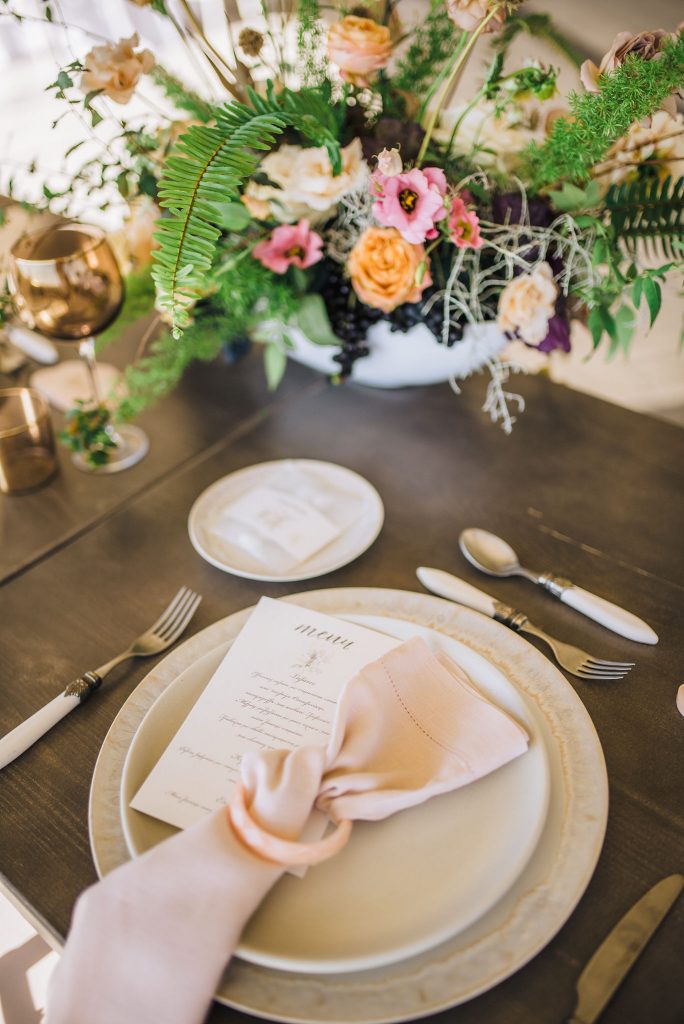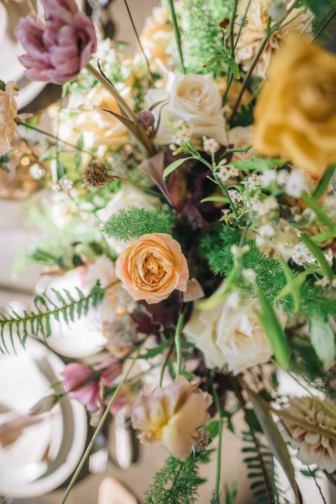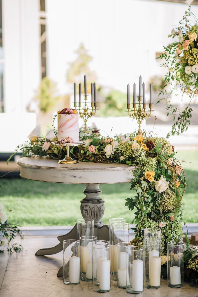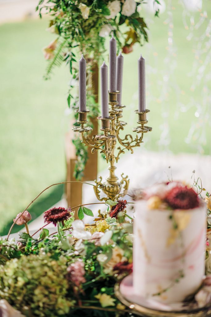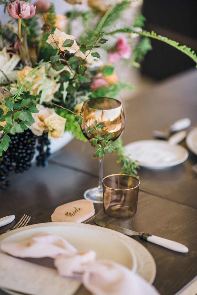 What better inspiration than a favorite classic, aka George Cukor's "My Fair Lady" strewn with romantic blooms, the likes of peach, cafe latte, custard, and rosewood tulips, garden roses, eustoma lysianthus, clematis, astranthia, and hydrangeas? The design involved delicate botanical accents, calligraphy and watercolors, agate and colored marble favors, golden candelabrums with mauve taper candles, flower textured and patterned candy, decadent chandeliers, earthware in neutral tones, and gold rimmed dusk brown glassware, and everything that can make a romantic wedding absolutely ... quoting Eliza Doolittle , "love(r)ly"!
