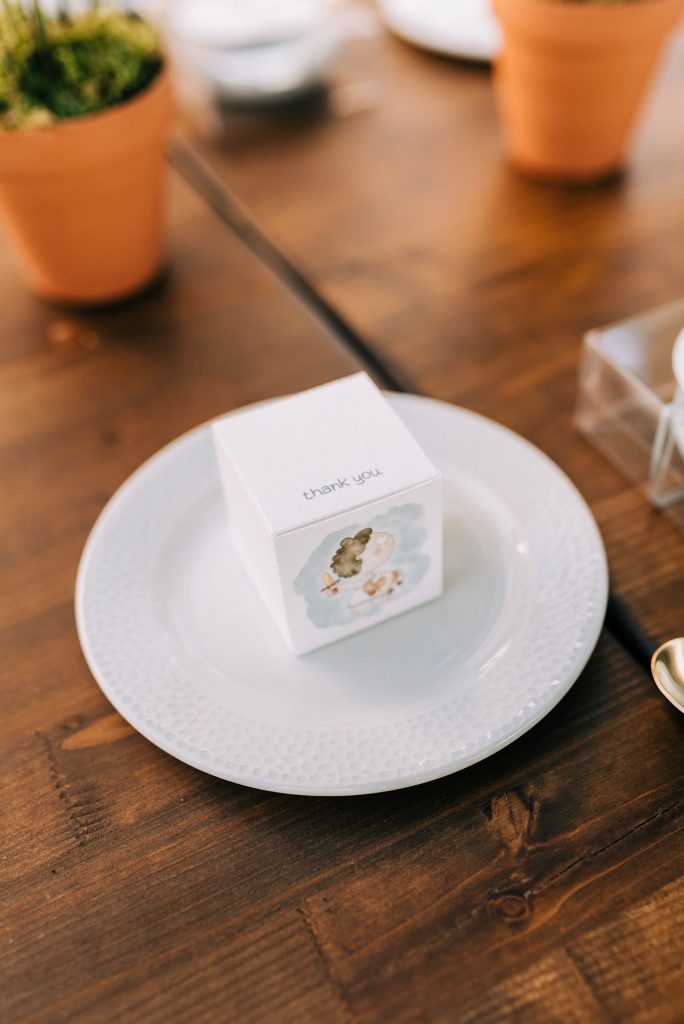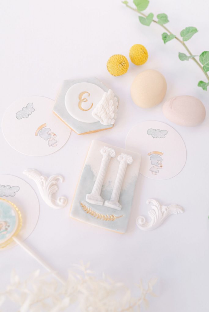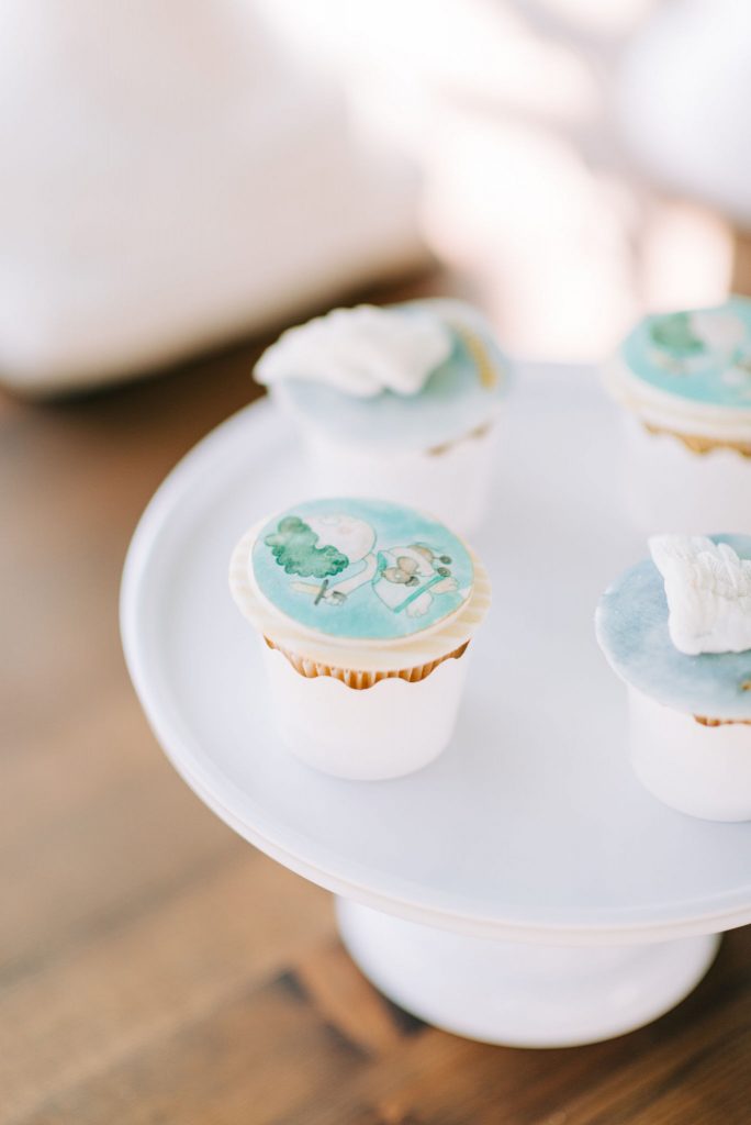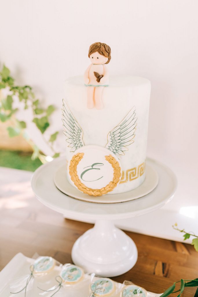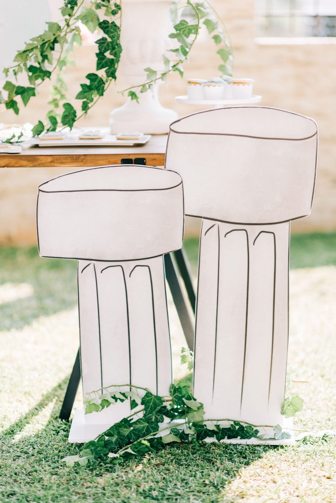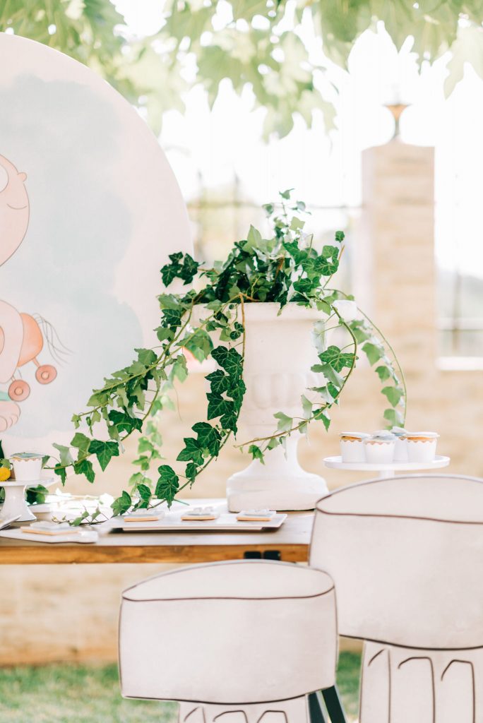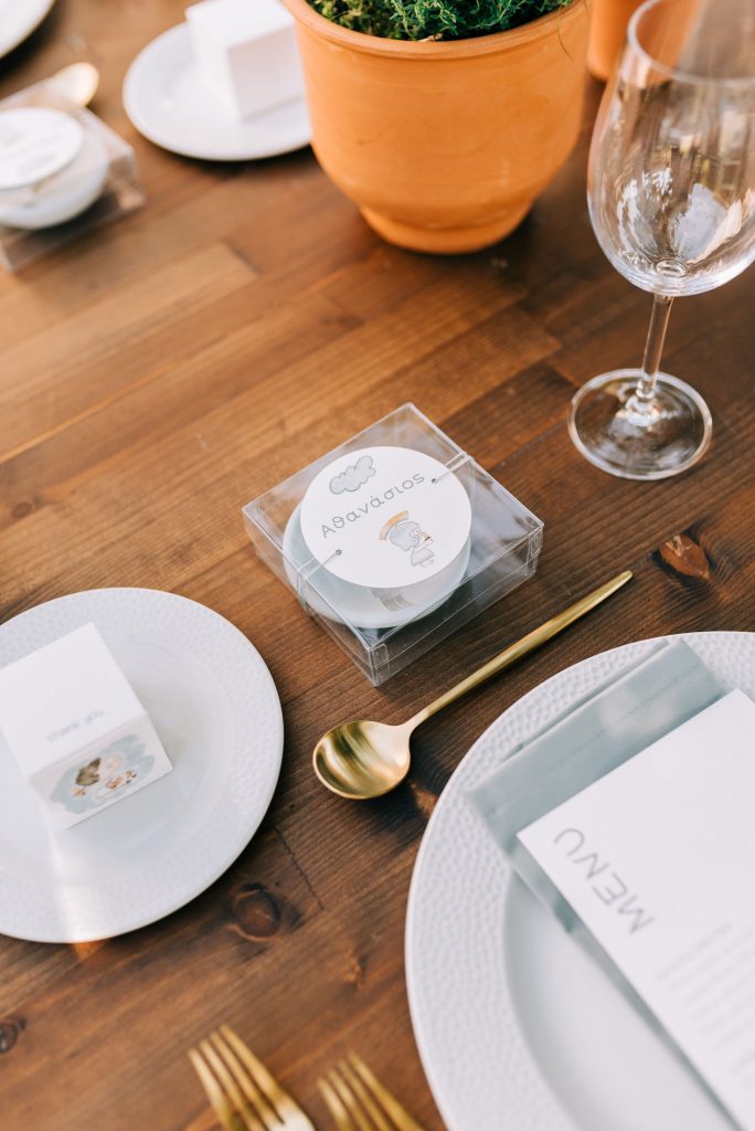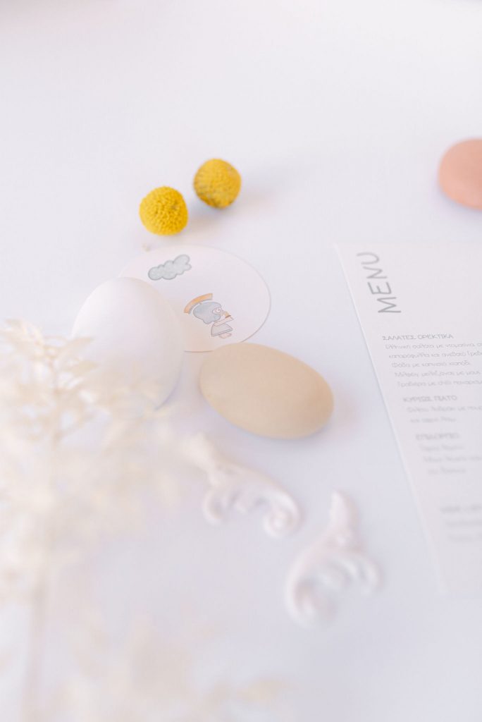 Manousenia created a custom sketch design with watercolor elements inspired by Triviza’s kids book "Little Hermes" which also inspired us to design and style the whole event.