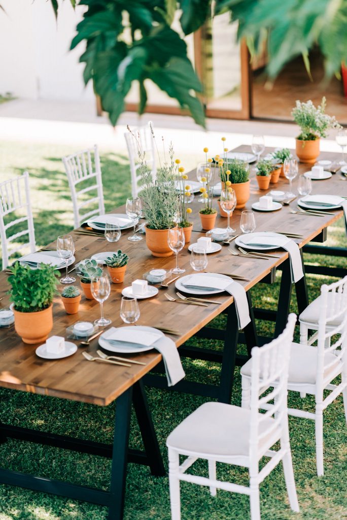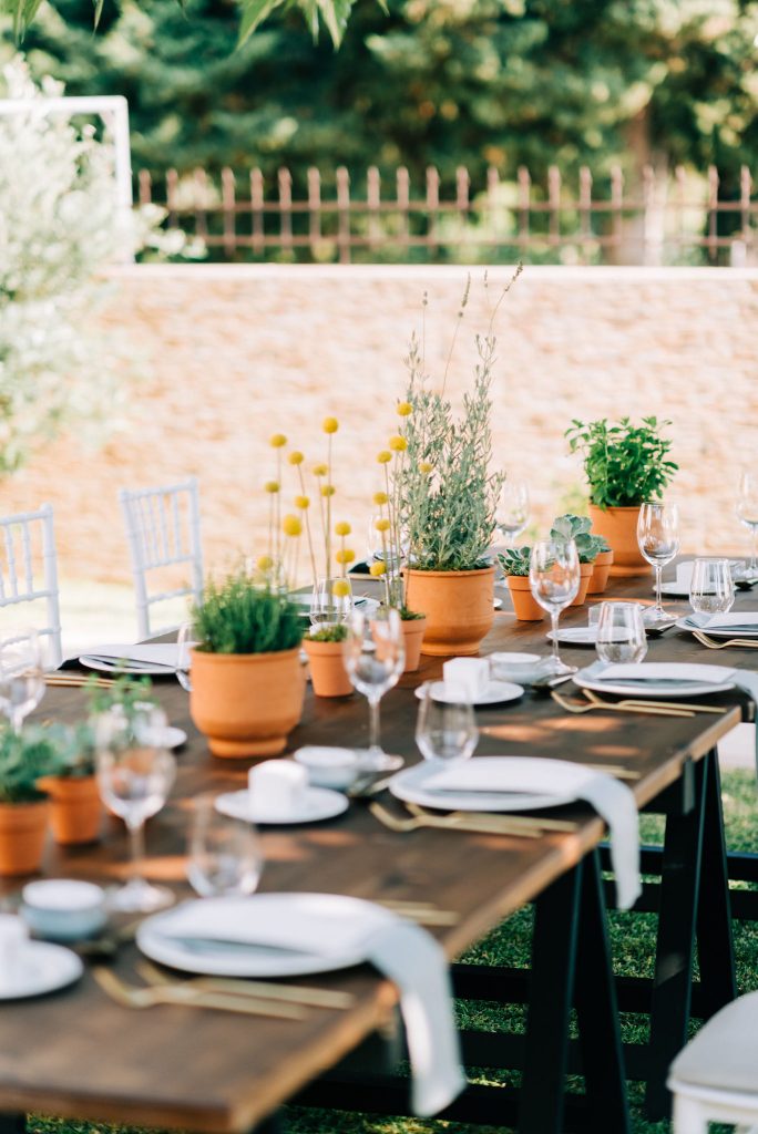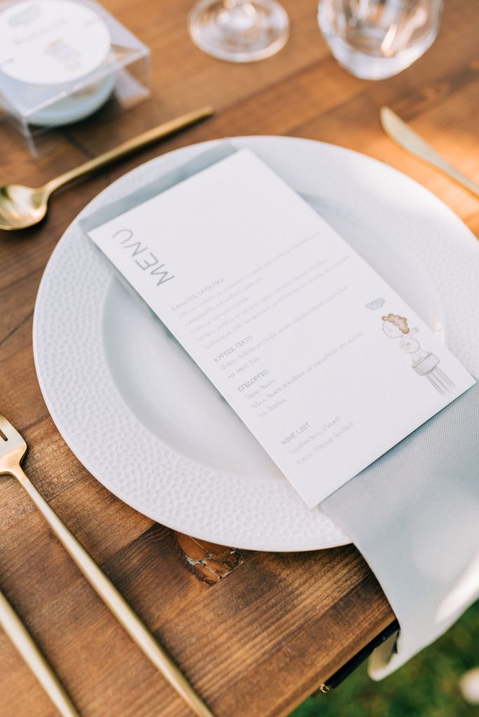 A garden private event in Preveza. Combining wooden banqueting style with farm-fresh, garden details, it perfectly captures the natural ambience of its location. No table setting is really complete without a styled menu to provide a finishing touch to its look! This sprawling open house provided the perfect backdrop for an intimate open air dinner.