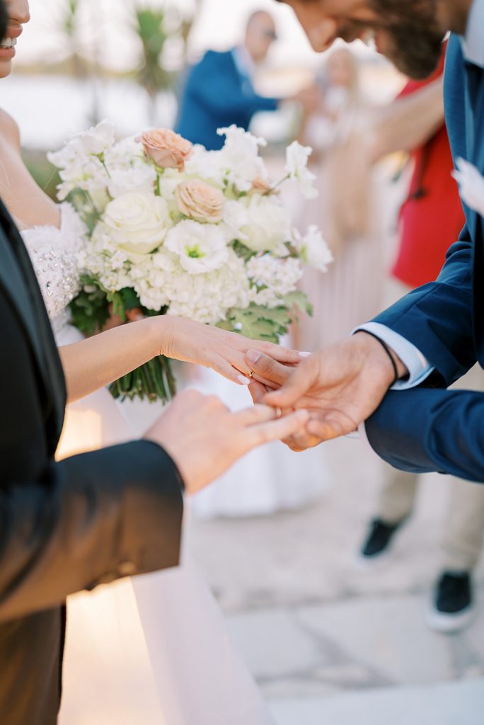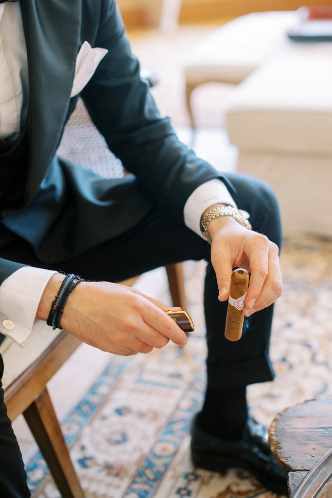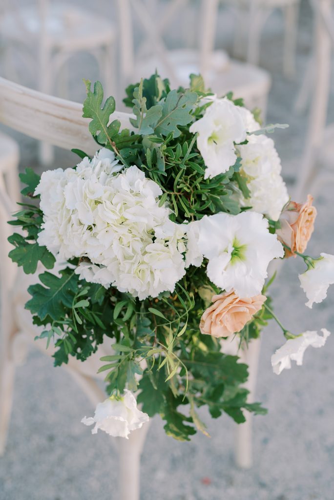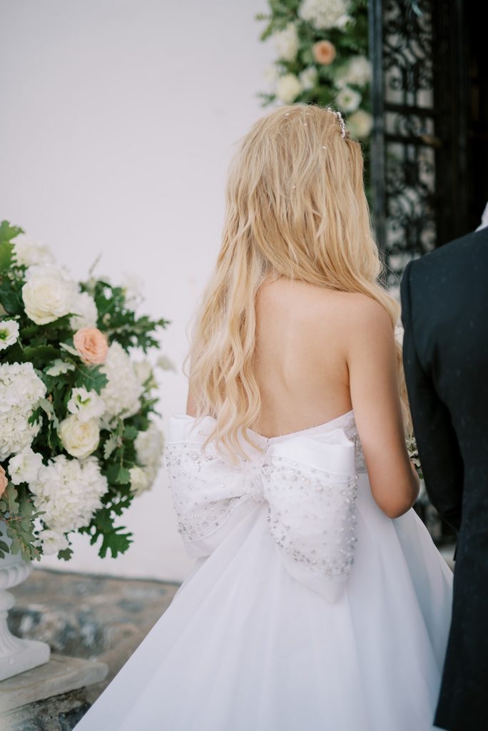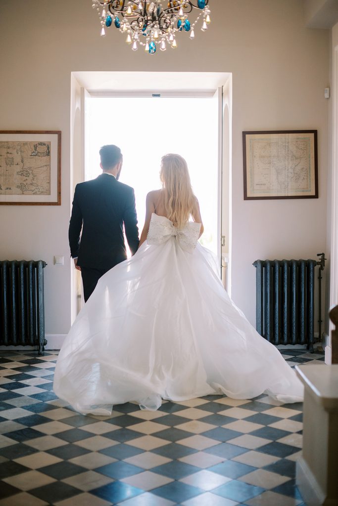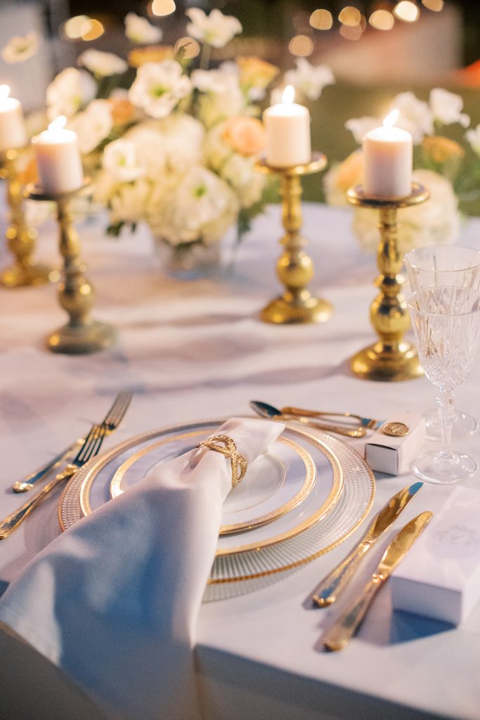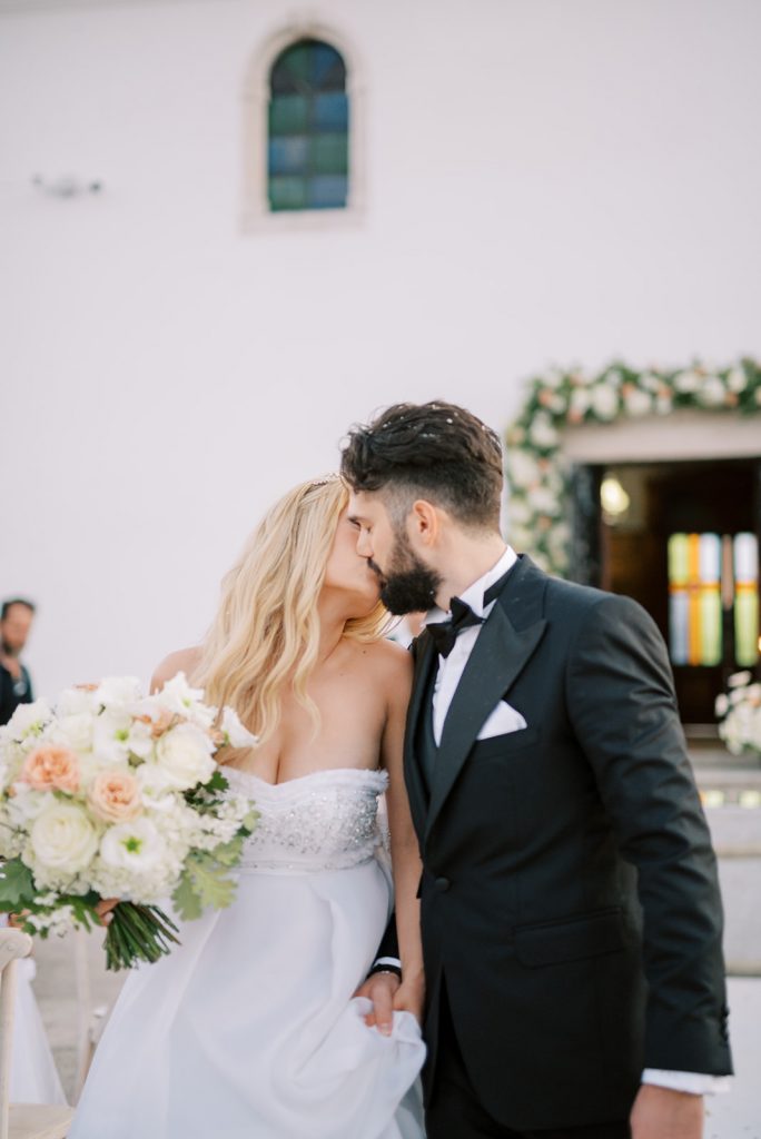 Manousenia designed a chic stationery suite with an acrylic invitation and a handdrawned map with historical places of Corfu to be mentioned. The couple offered to their guests a bottle of a traditional kumquat Corfu liqueur. Its name means “golden orange” and it is produced by extracting the rare citrus fruit kumquat into alcohol.