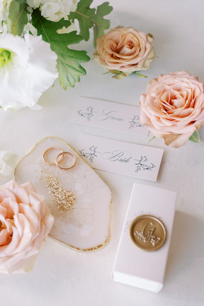 Wedding design details were curated to create a fresh luxurious palette featuring cappuccino tones and creamy neutrals, with an exploration into asymmetry. Paired with a earthy tone tabletop and complimenting modern decoration, the result achieved a romantic, refined experience that was both welcoming and elegant.