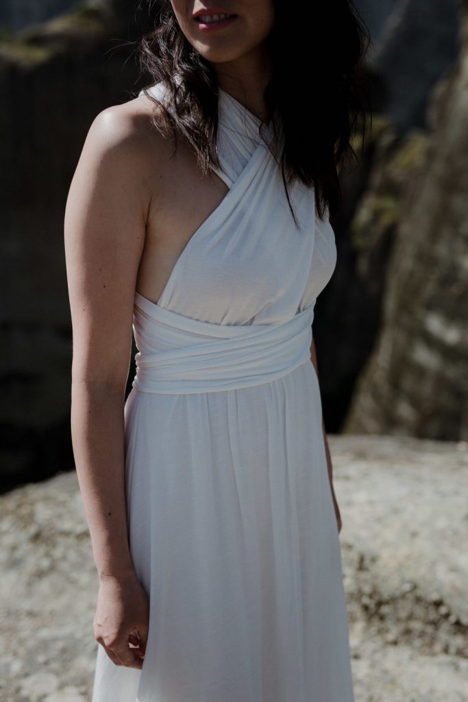 After a lot of searching among various designers, we found a simple, ethereal white dress from Moutaki designer. On the other hand I propose to Johnny to choose an outfit with different shades of blue, not something formal. A vest seemed to be the perfect choice. Deanna and Johnny are an adorable and such a sweet couple! We couldn’t do less than we did for making their elopement so memorable and fun!
