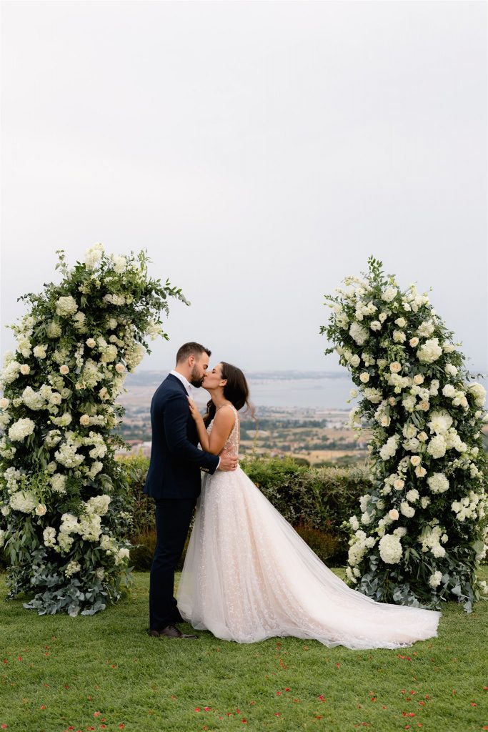 Sofia and Alex got married at Alex’s family house. They always wanted to provide their guests with a relaxed and beautiful atmosphere and no other venue could make them feel like home. They had a civil ceremony while also having a beautiful garden surrounding that we created the perfect reception.