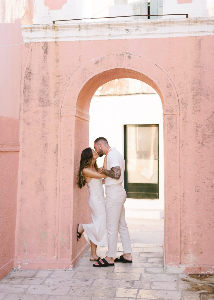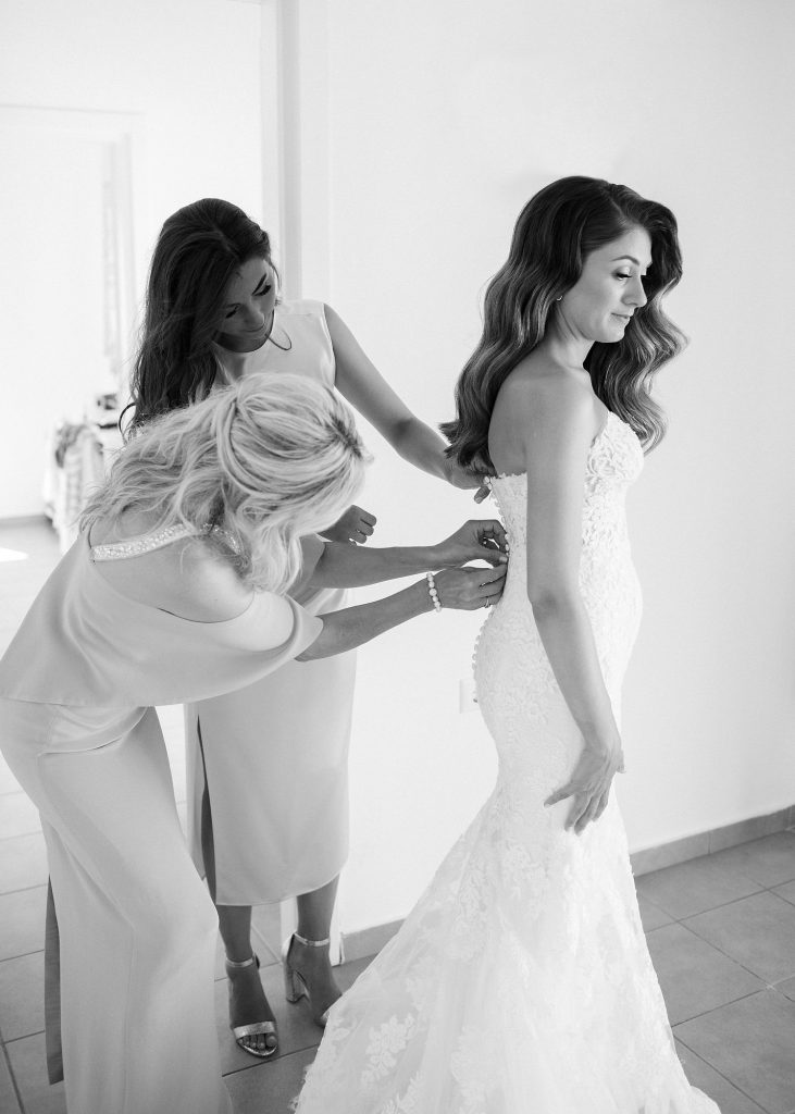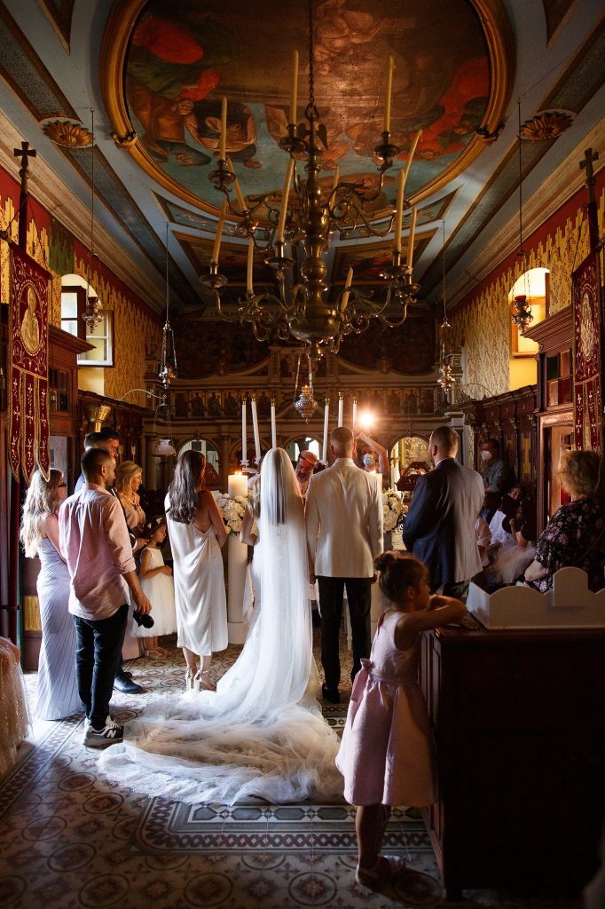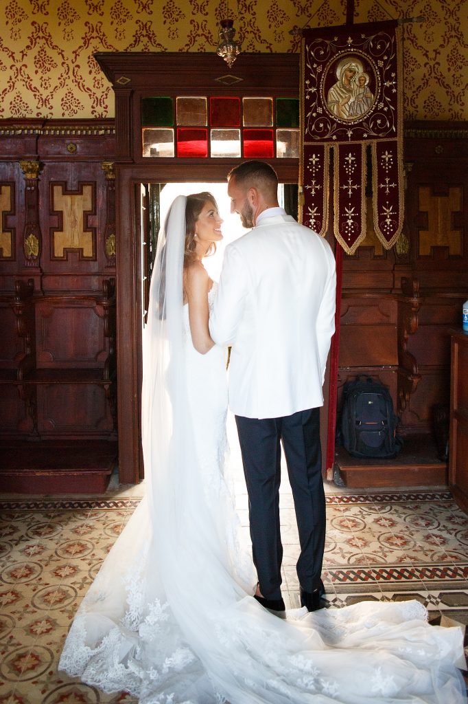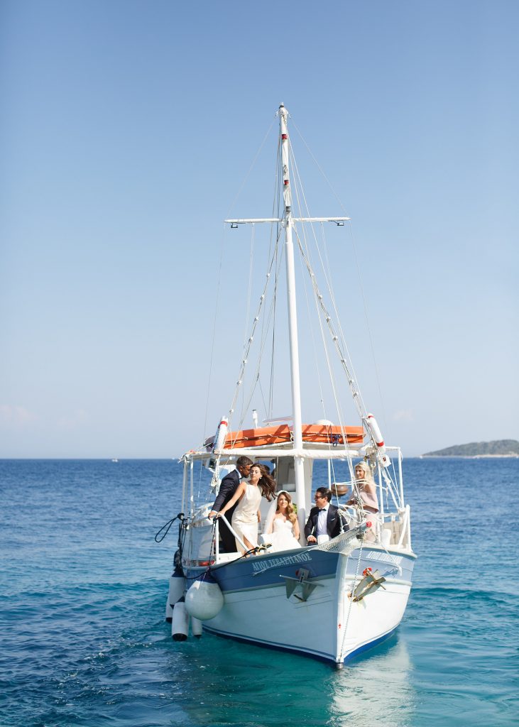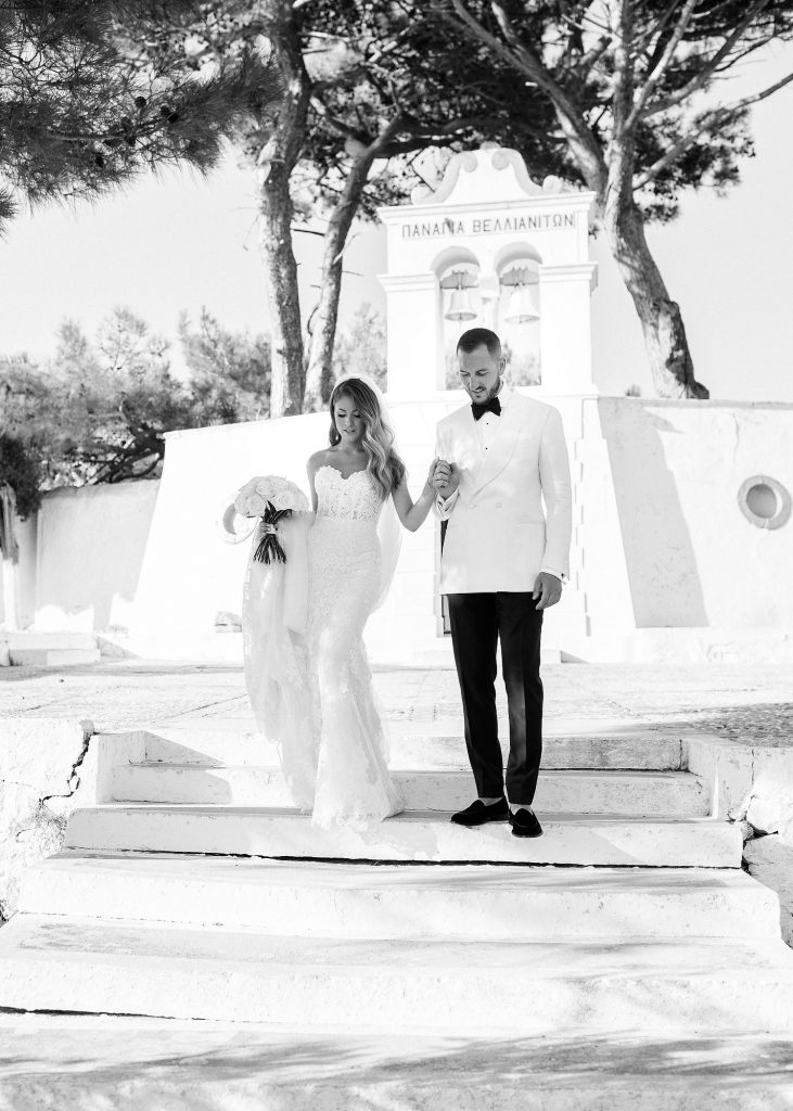 If something worth investing in a wedding day is a memorable experience. Mary arrived at the monastery on a traditional boat that was used for generations to carry brides to their soon-to-be husbands. With a symbolic meaning of traveling through the ripples of the water to what really matters, Mary arrived at the church accompanied with folk wedding tunes played by two local musicians, where she met Vaggelis, waiting for her with the warmest smile. He o ered her a bouquet of white roses (how appropriate) and hand in hand they entered the chapel where they’d be one forever. Immersing yourself and your guests in the traditional wedding customs of the destination you’re choosing, adds so much value to your wedding day - Mary and Vaggelis wanted to give their guests a truly authentic experience.