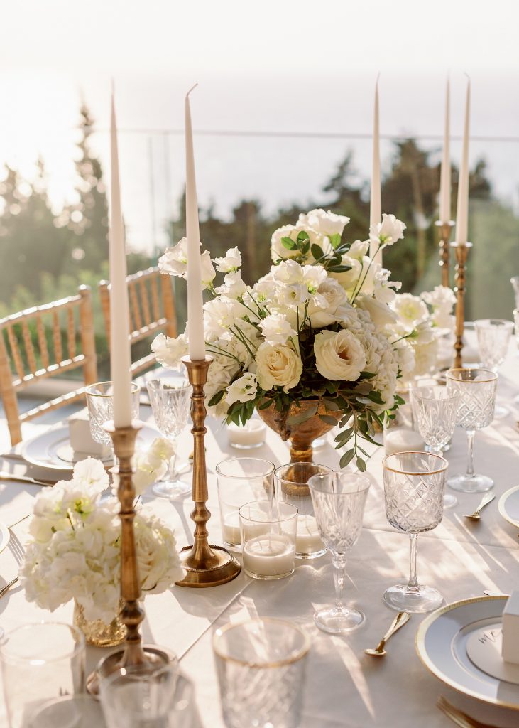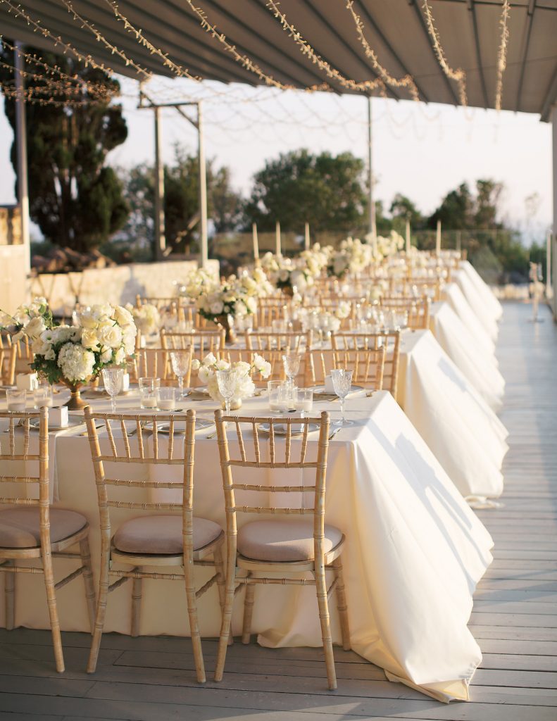 Elegance was the word. We worked closely with the couple on a concept that revolved around the delicate elegance of summertime in Greece, inspired by the whiteness apparent in many aspects of the country and the subtle and ever-present luxury of gold. Combine white and gold and the result is always refined. Mary and Vaggelis’s wedding was luxurious yet balanced, sophisticated, and above all celebrating the openness and lightness of summer.