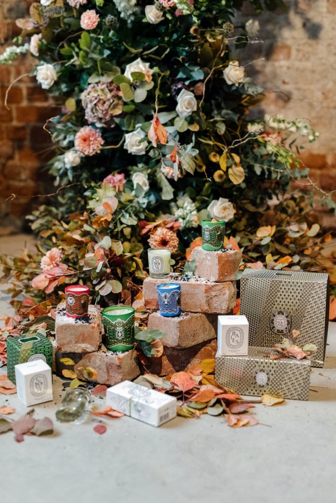 Fragrant favors: Give attendees the royal treatment with an assortment that’s almost too pretty to light. Scents of Winter like Pine Tree of Light, Exquisite Almond, Amber Balm, Baies and Tuberose are dim-free way to thank them for coming.