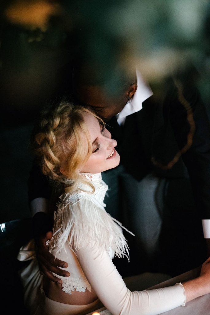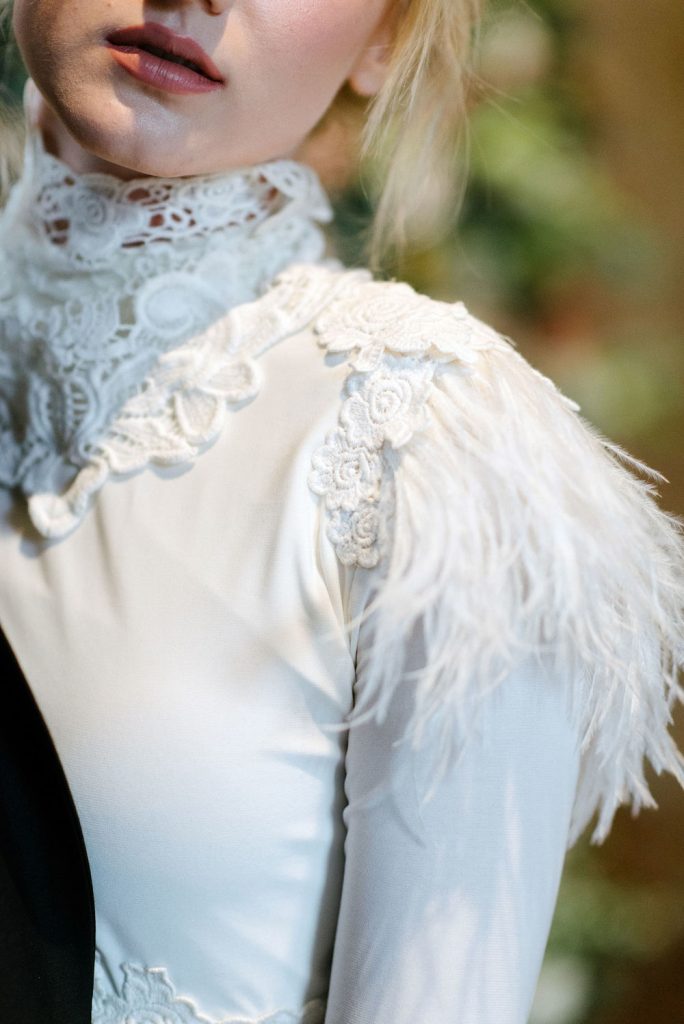 Snow Queen: Set against surreal snowlands or the city limits of a sparkling, frosted streetscape, winter wedding style lends itself to an otherworldly approach. Think of a two-piece gown encrusted with breathtaking embellishment, decadent beading and plumes!