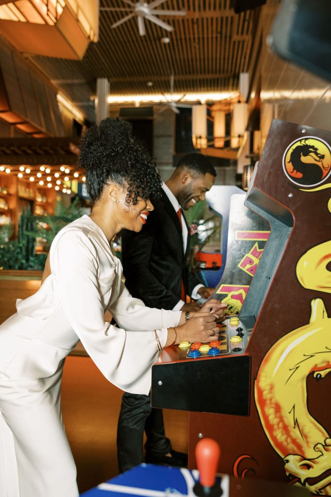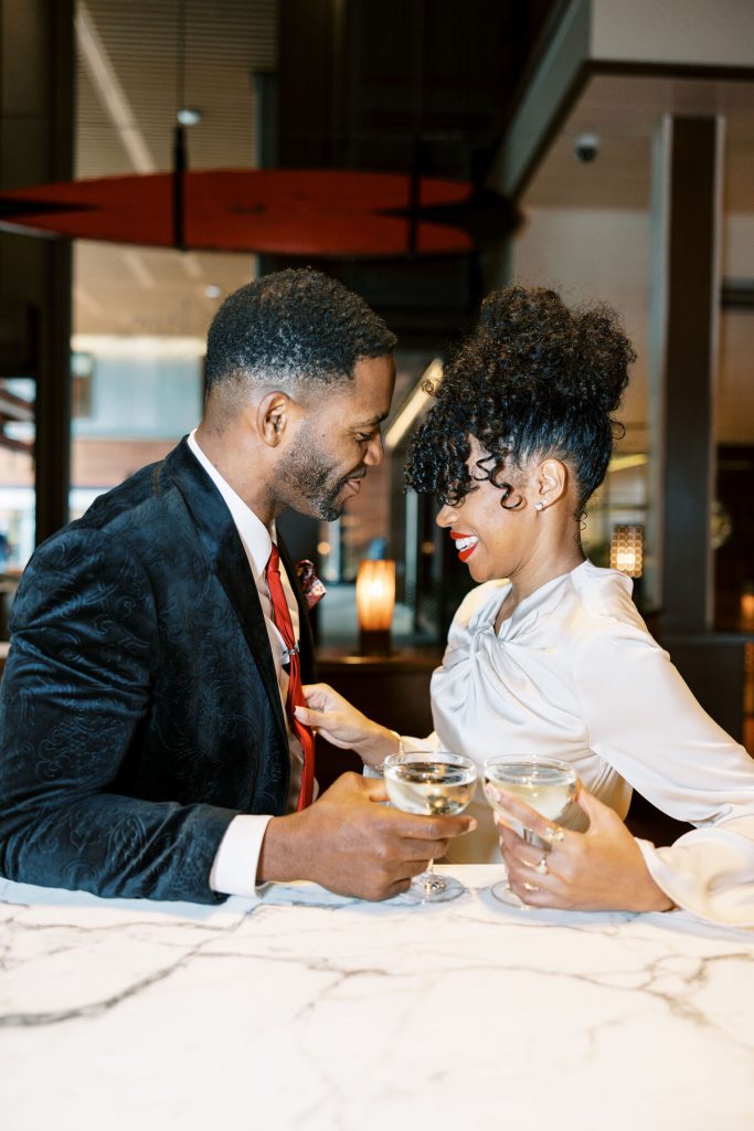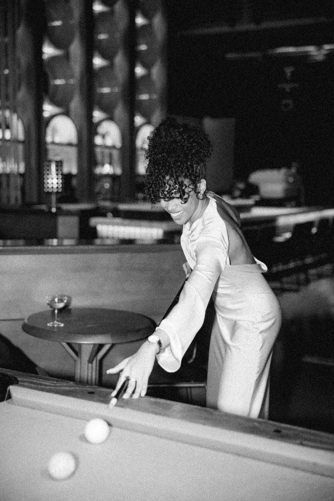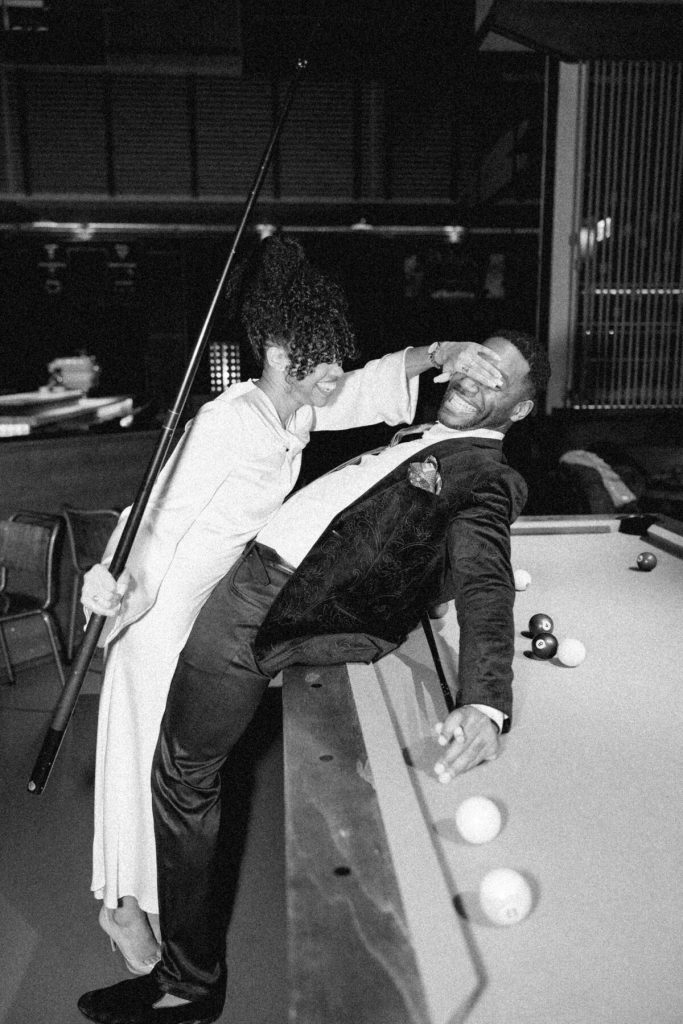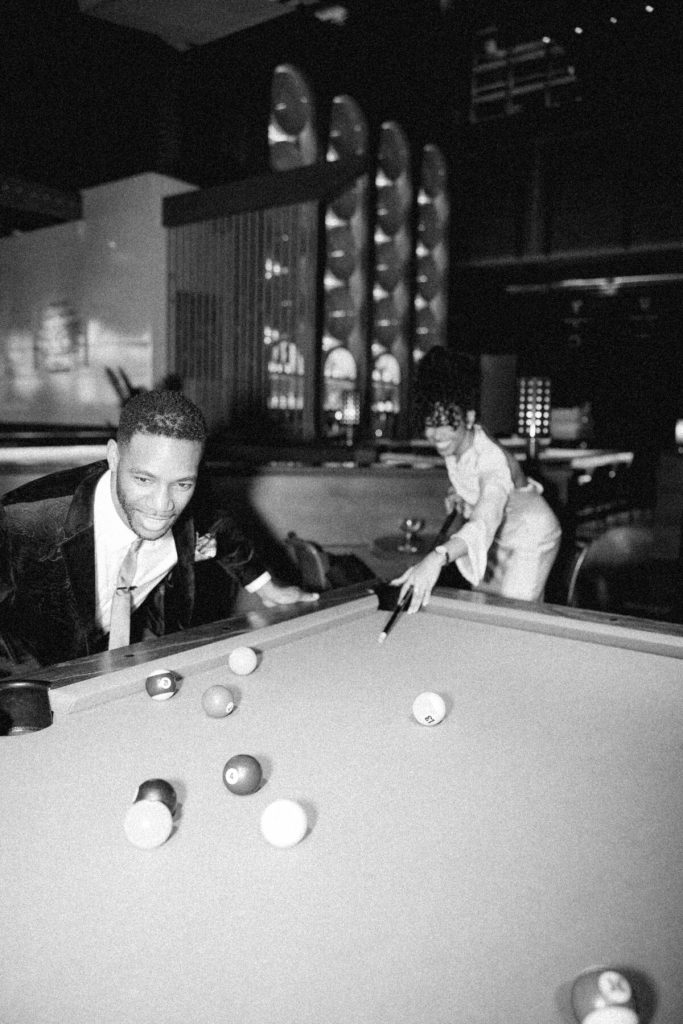 As the evening falls, they indulge in artisanal cocktails, each sip a toast to their love and the adventures they've shared together. The photographer captures the glint of mischief in their eyes as they playfully tease each other and candid moments as they try to start a pool table game!
